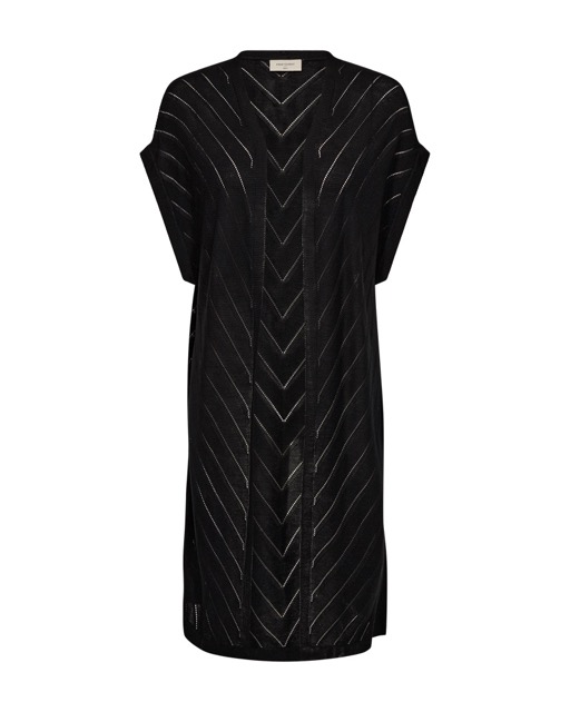 Sort cardigan fra Freequent i en finstrikket kvalitet med et stribet strukturmønster. Cardiganen er enkel i modellen med en åben front med en bred ribkant samt korte ærmer med drop shoulders, der understreger den løse pasform.