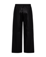 Bukser fra Freequent i en lækker kvalitet af imiteret læder. Bukserne er enkle i modellen med vide ben, syningsdetalje på knæerne, for- og baglommer samt elastik i taljen.
