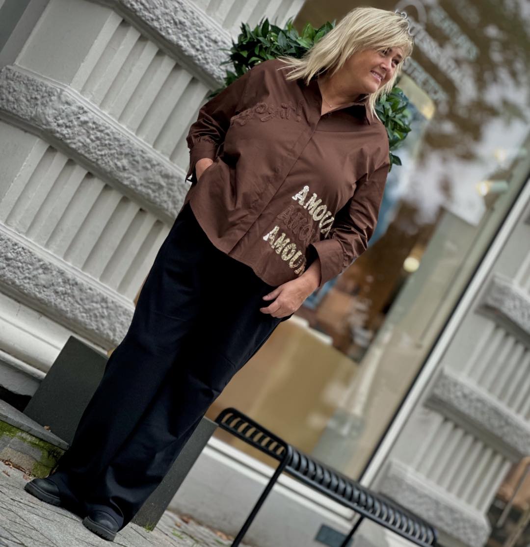 MIND by lene skjorte med skrift | Brun
