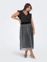 ONLY Carmakoma CARDORIS MIDI SKIRT JRS | Black SILVER GLITTER