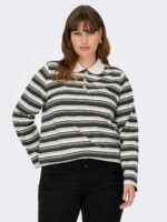 ONLY Carmakoma CARGLOBE L/S POLO O-NECK BLOUSE JRS | Cloud Dancer BLACK
