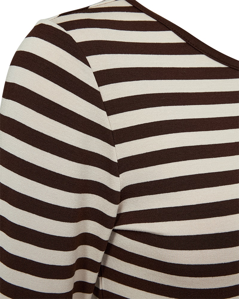 Den klassiske FQLiana Tee fra Freequent er en tidløs stribet bluse, der er både praktisk og anvendelig. Med sin ekstra bløde kvalitet er den et must-have i garderoben – perfekt til både hverdagsbrug og til at dresse op til særlige anledninger.