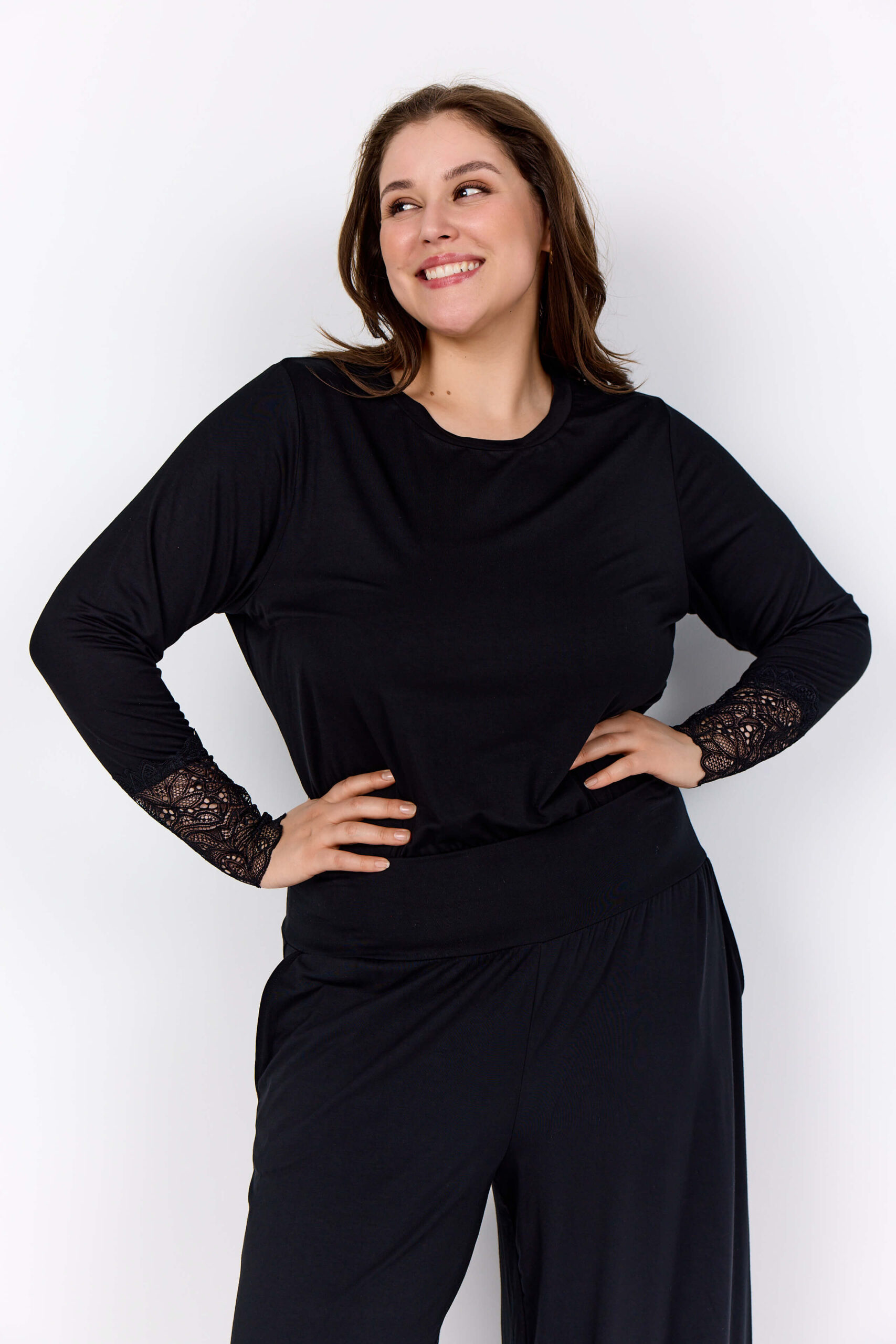 Oplev en elegant og komfortabel sort bluse, der kombinerer enkelthed med smukke detaljer. WA-STELLA 24 er skabt til dig, der elsker et feminint touch i din hverdagsgarderobe. Den klassiske sorte farve, de bløde materialer og de fine blondemanchetter gør den til en sikker favorit – både til afslappede og mere formelle lejligheder. Style den med skræddersyede bukser eller en lang denimnederdel for et gennemført look.