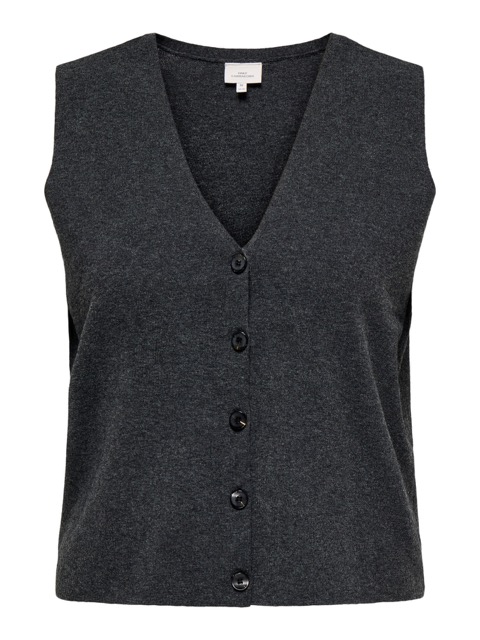 grå strikvest med v-hals og knaplukning. ONLY Carmakoma CARBETINA Vest Dark Grey Melange