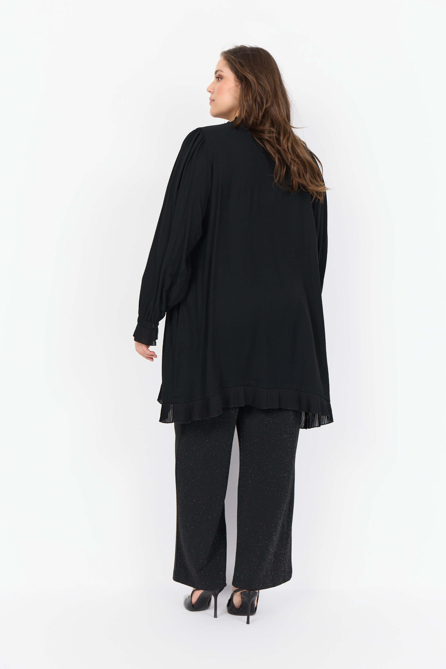- Lange ærmer med plisserede manchetter