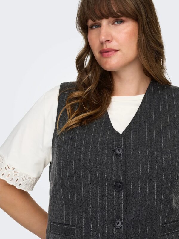 ONLY Carmakoma CARSIGA LIFE S/L HB RHINE WAISTCOAT TLR | Dark Grey Melange PINSTRIPE W. RHINESTONE