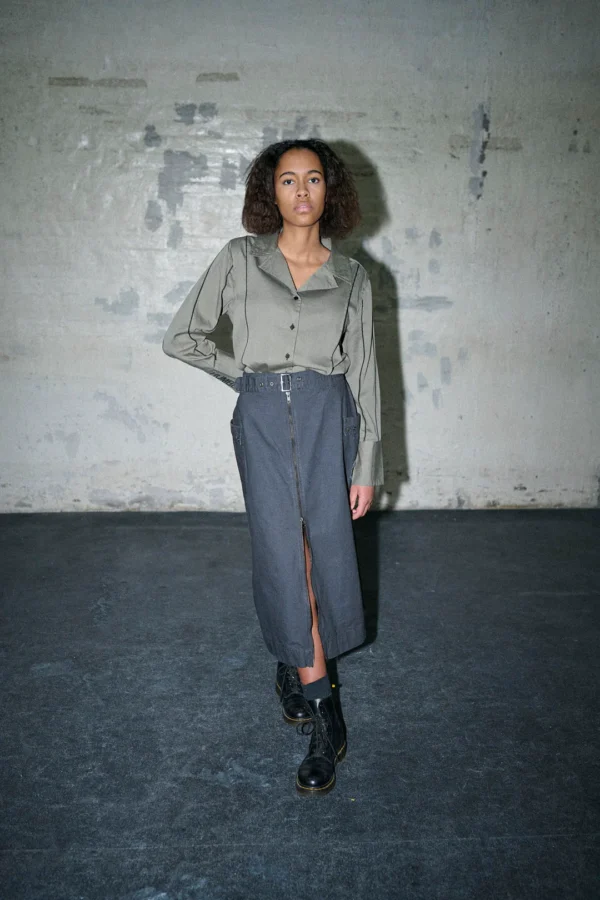 LuzHBS nederdelen i mørkegrå fra Humble er lavet i kraftig bomuld og har et cool, funktionelt udtryk. De markante lommer og bæltespændet giver et råt look, mens den lige pasform gør den nem at style til både hverdag og lidt pænere brug.