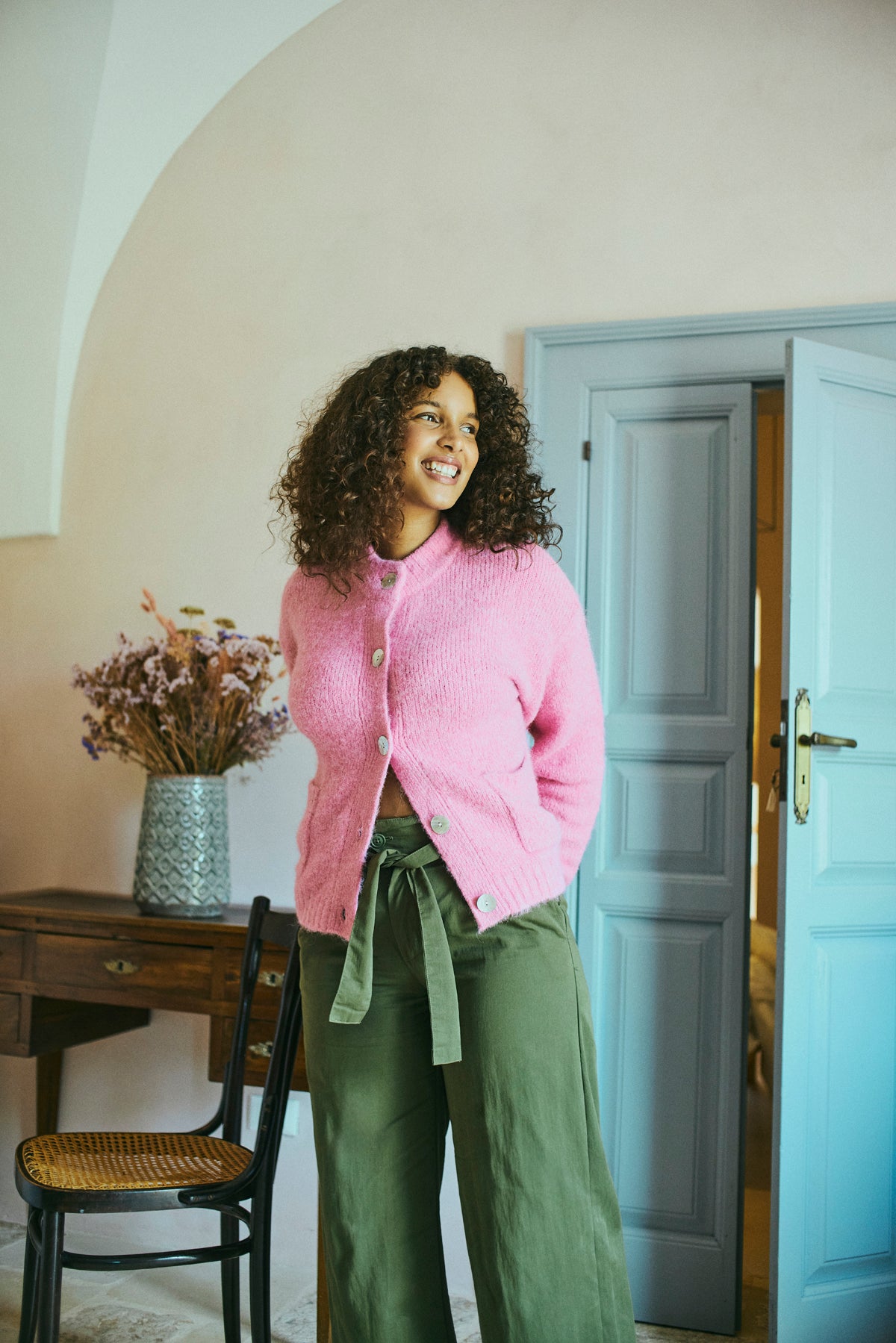 Disse grønne bukser er ideelle til dig, der ønsker en stilfuld base med lidt kant. Bæltets design trækker blikket opad og skaber balance, mens snittet holder looket rent og afslappet – perfekt til både arbejde, caféture og weekendens afslappede planer.