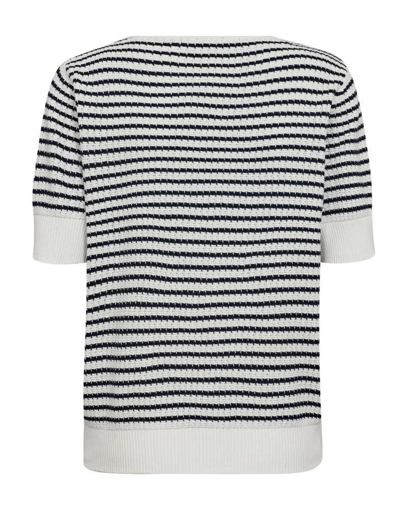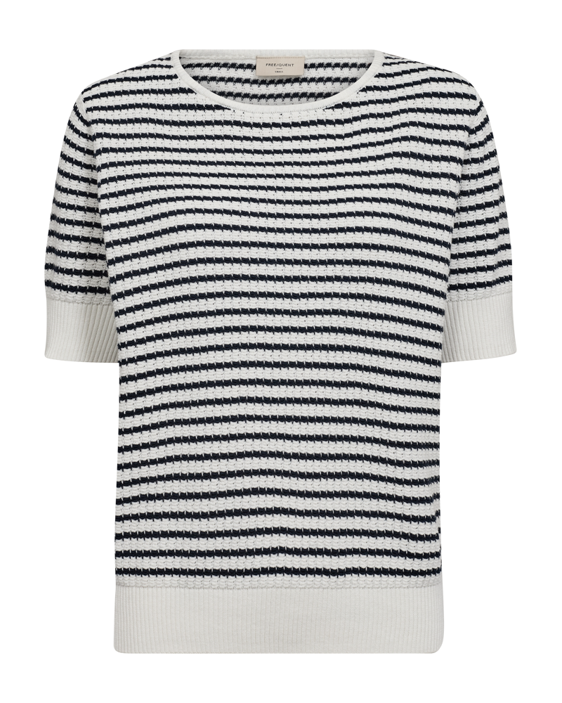Pullover fra Freequent i en blød, finstrikket kvalitet med strukturmønster og striber. Pulloveren er enkel i modellen med korte pufærmer, en rund halsudskæring, brede ribkanter samt en elegant, løs pasform.