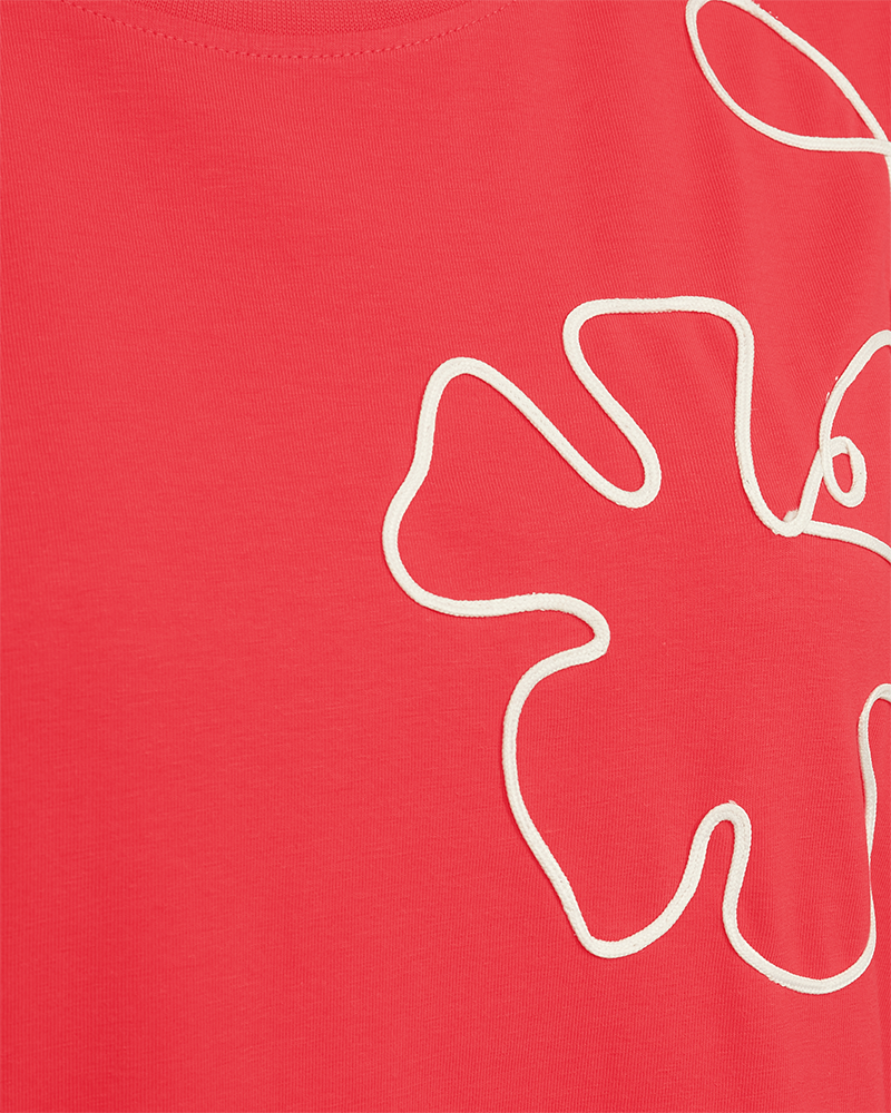 Fed rød t-shirt fra freequent med sødt påsyet mønster. Lækkert materiale som er let og åndbart, og er dejligt at have på hele dagen.
