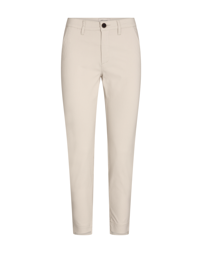 Bukser fra Freequent i en blød og stretchy kvalitet. Bukserne er enkle i modellen med en smal pasform, knap- og lynlåslukning, en høj talje, sidelommer samt ankellange ben med slidser.