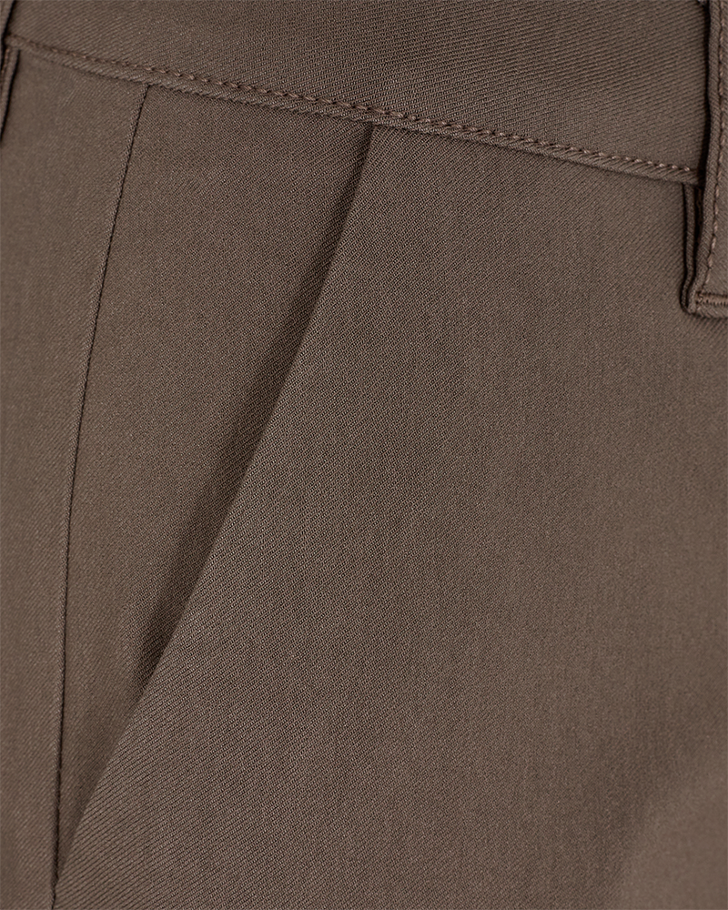 Bukser fra Freequent i en blød og stretchy kvalitet. Bukserne er enkle i modellen med en smal pasform, knap- og lynlåslukning, en høj talje, sidelommer samt ankellange ben med slidser.