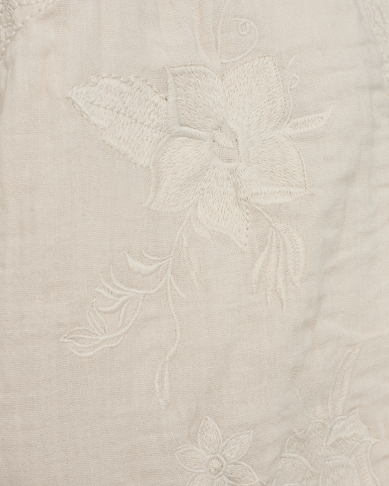 Smuk vest i den flotteste cremede beige! Vesten har et smukt broderimønster med blomster, den er foret og har en super fin længde - Perfekt over en skjorte eller en tynd strik. Et godt lille boheme-pift til din garderobe.