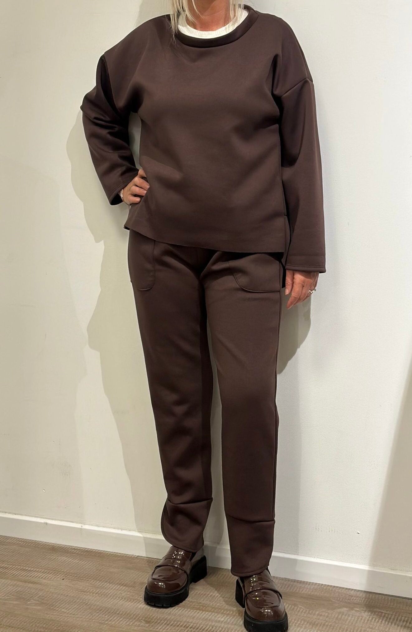 Komfort og stil i ét! De bløde bukser har elastik i taljen for den perfekte pasform og en smart detalje i benet, der giver et moderne twist. Perfekte til både hverdag og hyggelige stunder.