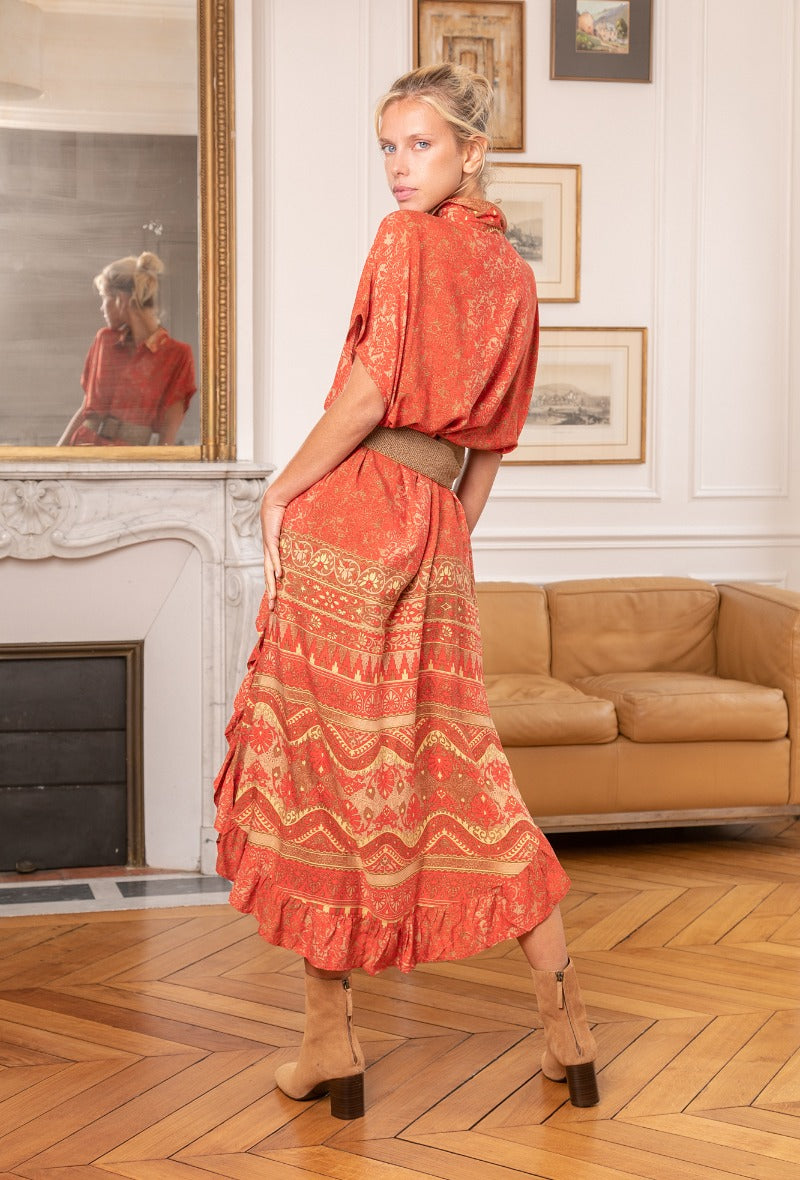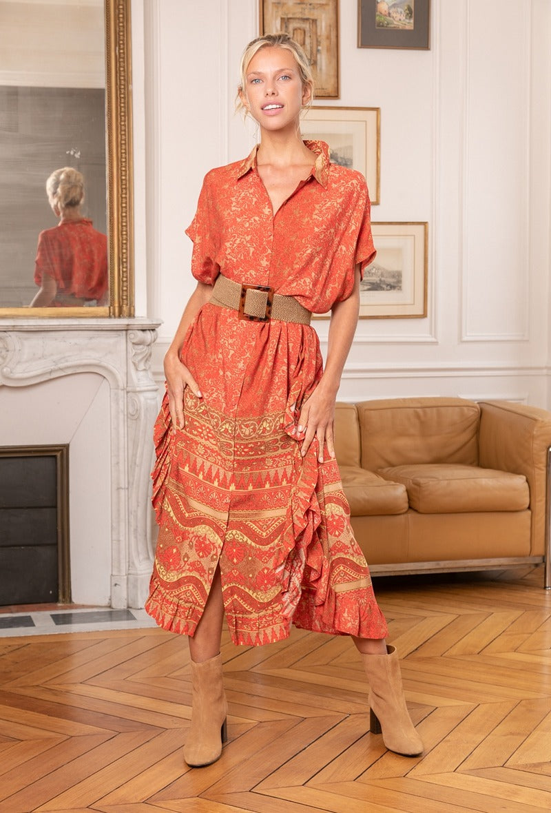 MIND by lene orangerød mønsteret skjorte kjole