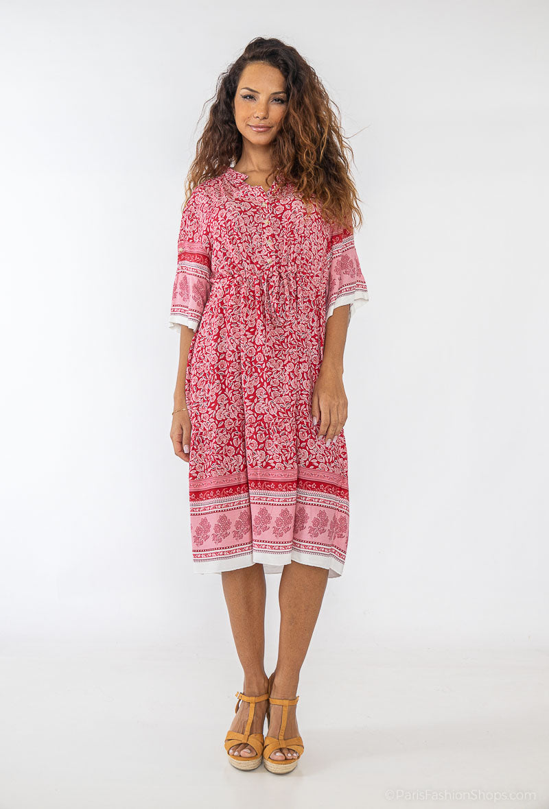MIND by lene – Rød Mønstret Kjole