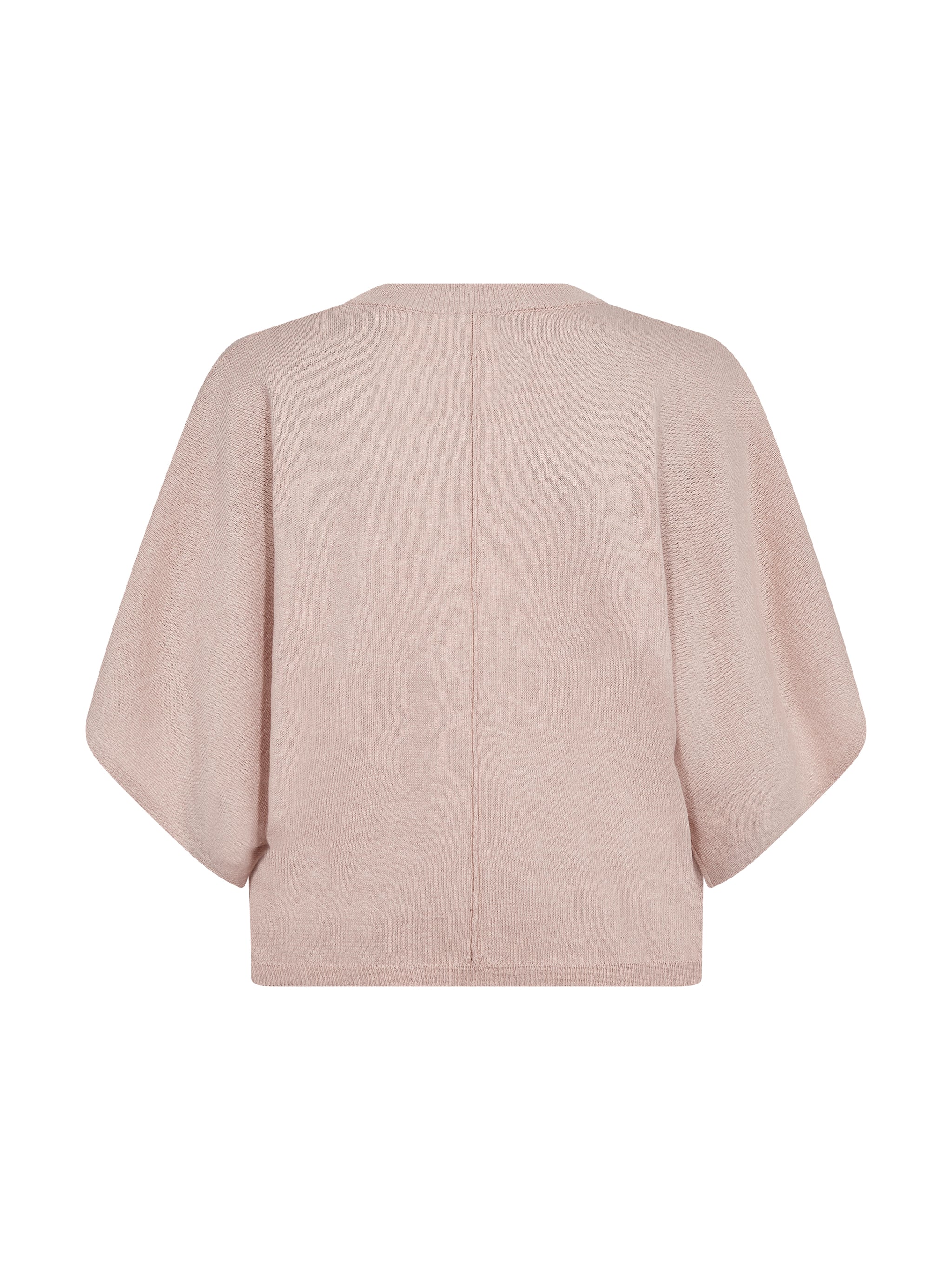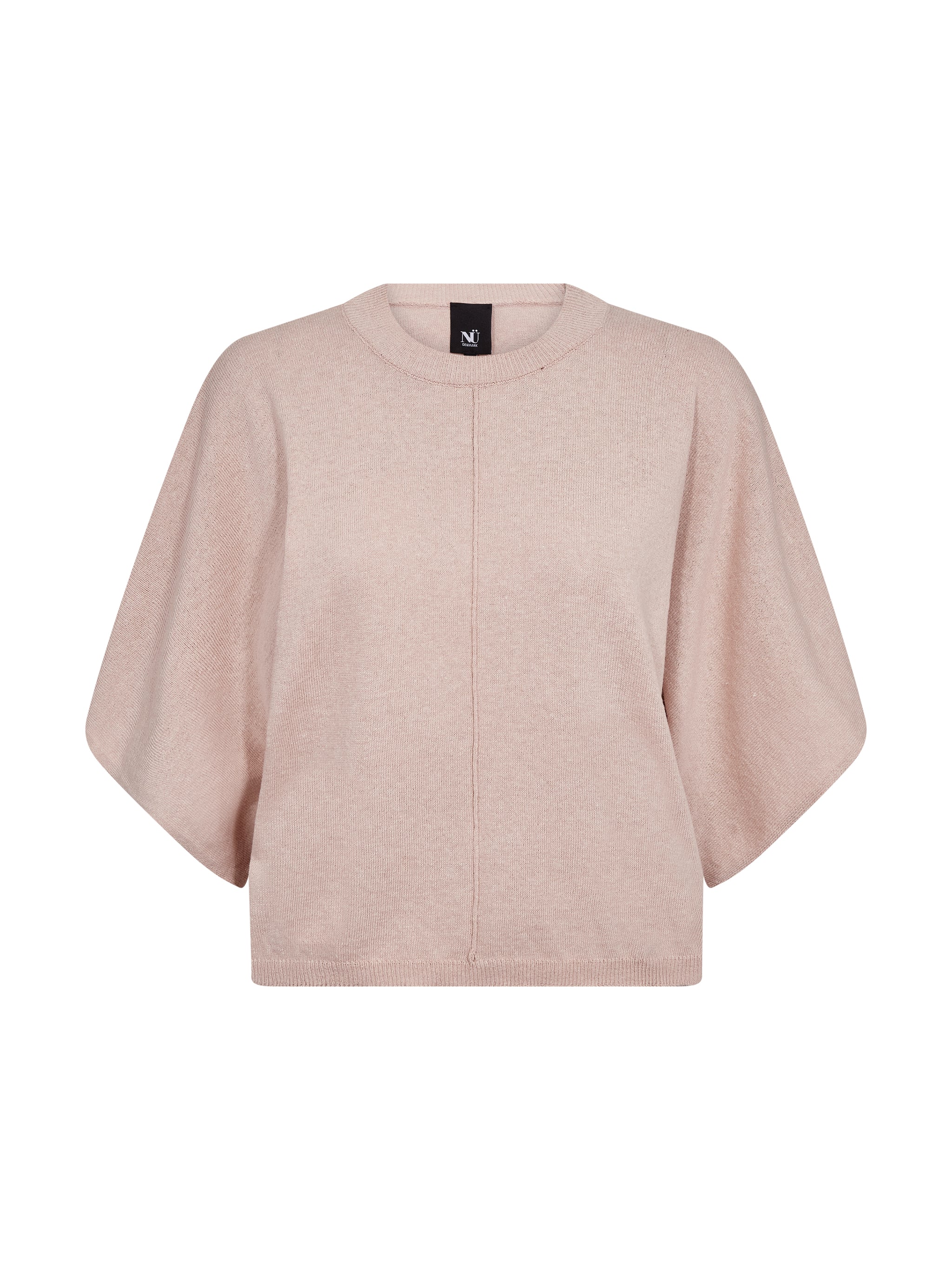 Blød og stilren strikbluse fra NÜ i en smuk, støvet rosa nuance. Blusen har et moderne og afslappet udtryk med sine brede, korte ærmer og løse pasform, der falder flot og let om kroppen. Den enkle rund hals og diskrete detalje midt foran giver et minimalistisk look, som gør den nem at style til både hverdag og mere casual anledninger.