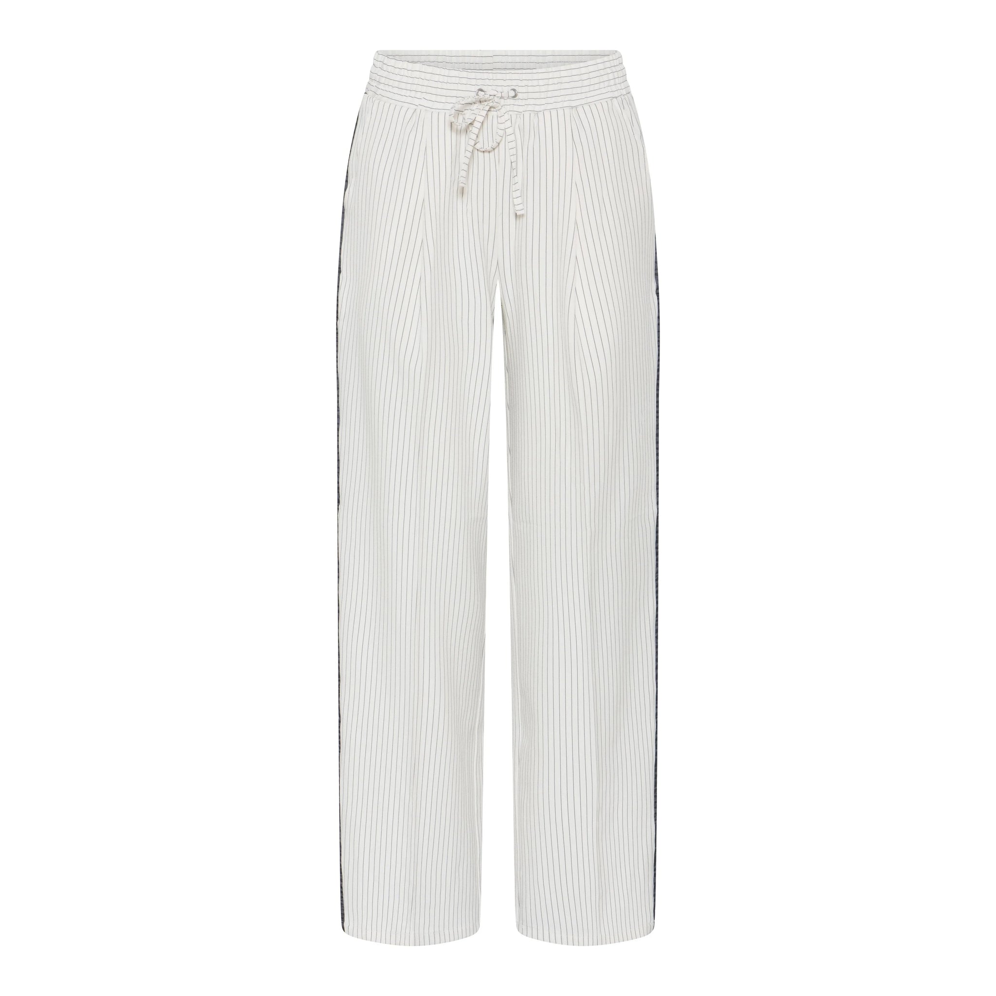 Komfortable bukser med smalle striber og afslappet pasform. Modellen har elastik i taljen med bindebånd samt lige, løse ben. Perfekte til både hverdag og et afslappet sæt med matchende overdel.
