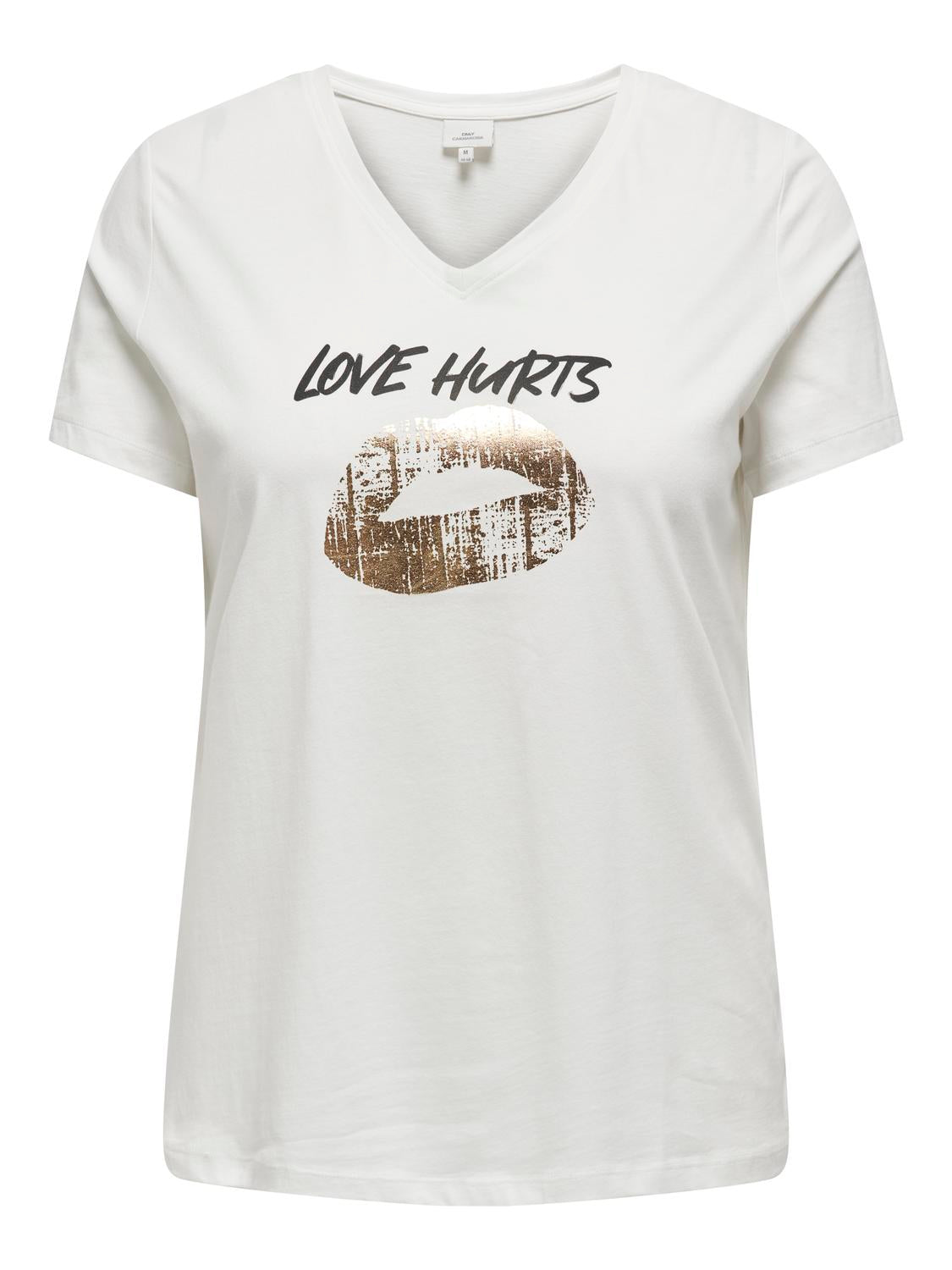 ONLY Carmakoma Cloud Dancer FOIL LIPS T-Shirt CARLYDIA LIFE SS V-NECK REG TEE JRS