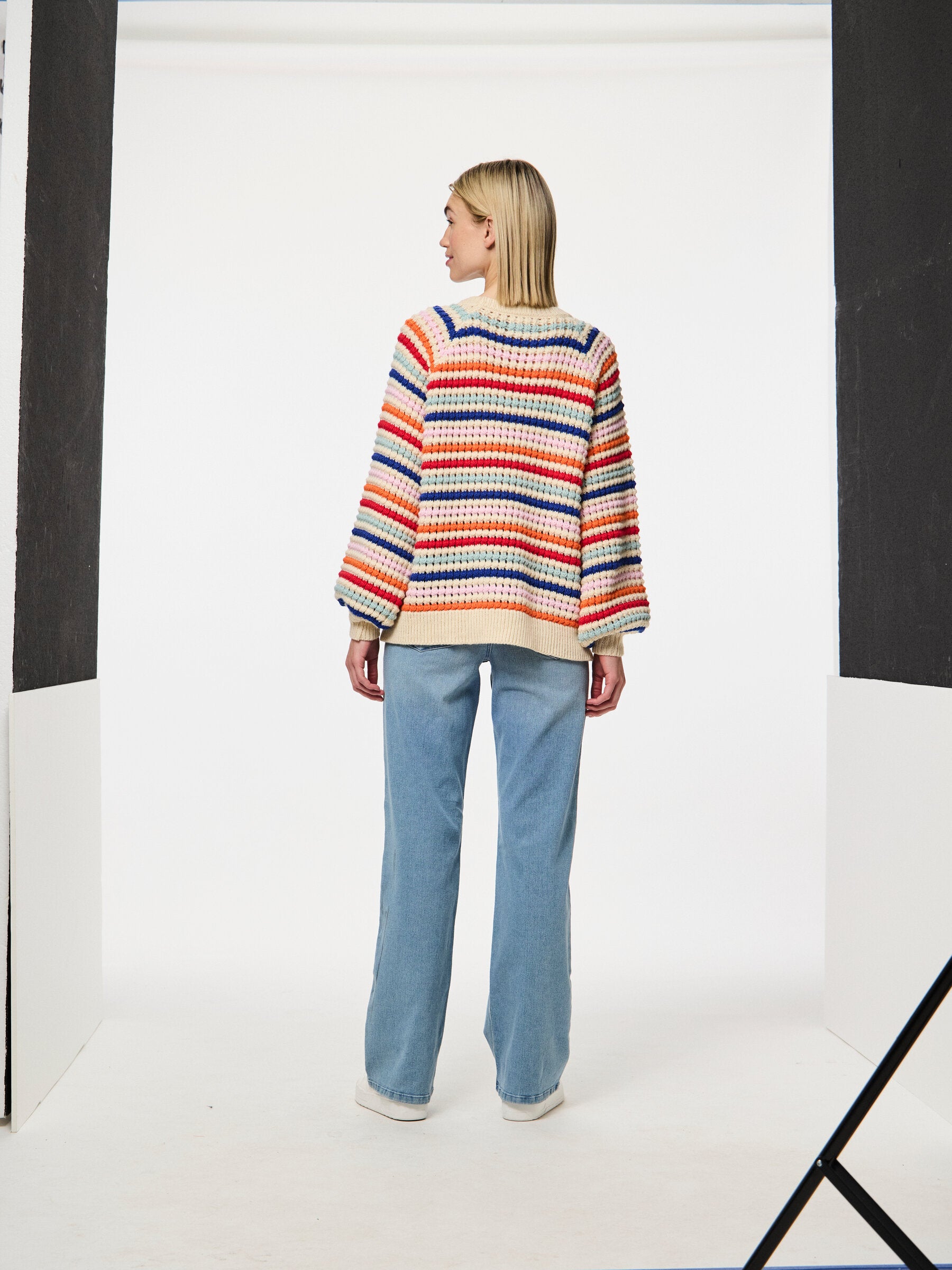 PIECES Birch Mandarin Orange MULTI Pullover PCDOSLA LS O-NECK KNIT MM