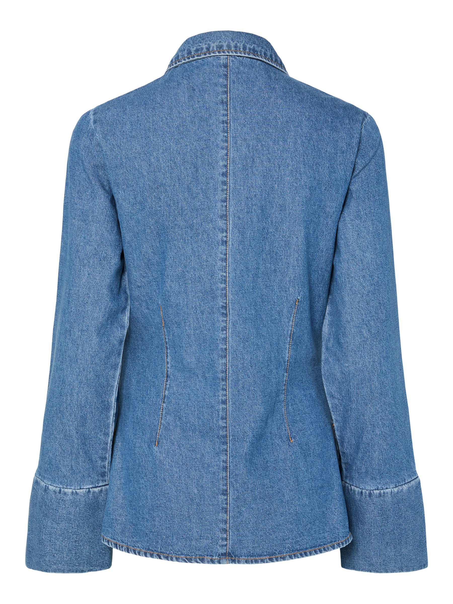 Figursyet denimskjorte, der også kan bruges som jakke. Denimskjorten har de fineste detaljer, som giver den et feminint touch.