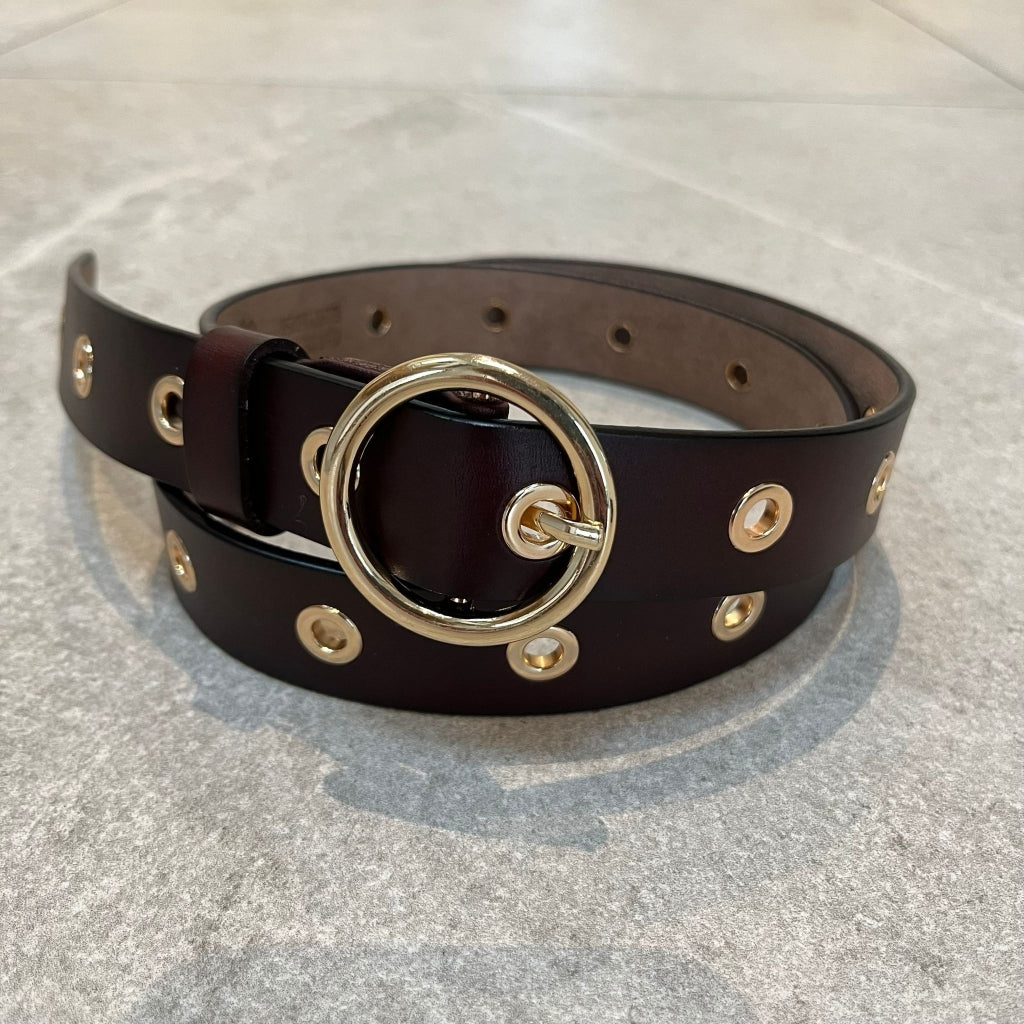 THREE M Brunt læderbælte med guldhuller
