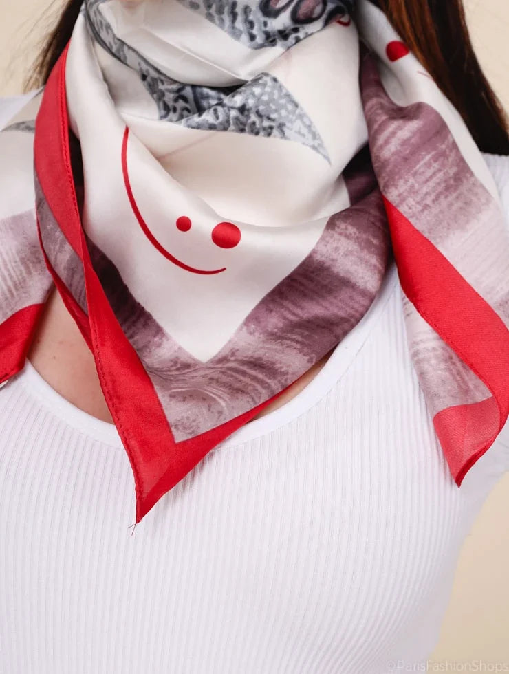 Stilfuldt tørklæde i et flot mix af røde nuancer. Måler 70 x 70 cm og er det perfekte accessory til at give dit outfit et frisk og moderne twist. Brug det om halsen, i håret eller på tasken for et trendy touch.